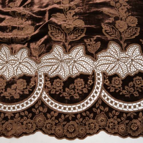 Коричневый шелковый бархат с вышивкой ришелье Италия