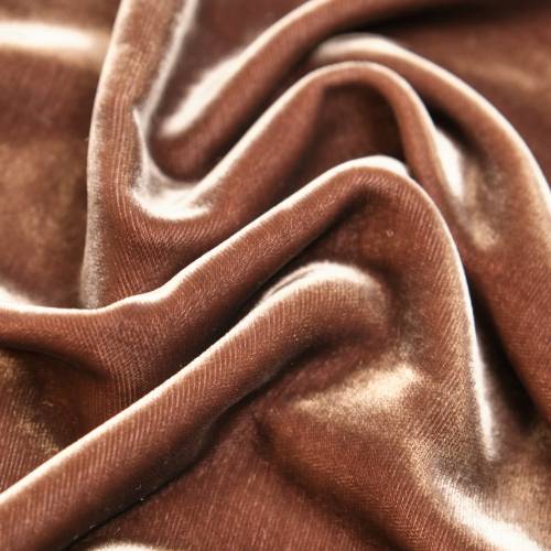 Воплощение тактильного гедонизма и вечерней роскоши. Этот премиальный артикул — 100% вискозный бархат, который ценится кутюрье за свою невероятную пластику. В отличие от сухого хлопкового бархата, вискозное полотно буквально стекает по фигуре, образуя мягкие, «жидкие» драпировки. Ворс ткани густой, шелковистый, с глубоким внутренним свечением, которое заставляет цвет «играть» полутонами при движении. Оттенок «Золотистый Мокко» — теплый, сложный коричневый цвет с бронзовым отливом. Ткань дышит, приятна к телу и идеально подходит для пошива платьев-комбинаций, расслабленных костюмов в пижамном стиле, широких брюк и нарядных жакетов.