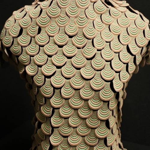 Это макраме представляет собой искусное сочетание изысканных элементов на черной сетке, создавая эффектное и динамичное полотно. Каждый элемент, пришитый к сетке, добавляет уникальности и рельефа, что делает ткань идеальной для создания акцентированных деталей в одежде, придающих образу дополнительный объем и интересную текстуру.
