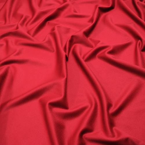 Воплощение страсти и итальянского качества в безупречном альянсе двух благородных волокон. Данное полотно представляет собой премиальный бленд: 88% нежнейшего кашемира обеспечивают фирменную мягкость, тепло и роскошный «маслянистый» гриф, а 12% отборной мериносовой шерсти добавляют ткани необходимую для верхней одежды структуру и износостойкость. Колористическое решение выполнено в оттенке, близком к Pantone Rhythmic Red — это глубокий, пульсирующий рубиновый цвет, лишенный агрессии ярко-красного, но обладающий магнетической притягательностью и статусом. Поверхность ткани имеет деликатный, бархатистый ворс с благородным матовым финишем. Плотность 340 г/м² является «золотым стандартом» для демисезонной группы (Jacketing/Light Coating): материал идеально держит форму в лацканах и воротниках, но остается достаточно пластичным для создания мягких силуэтов. Это лучший выбор для пошива акцентного жакета, теплой юбки-карандаш, брючного костюма для прохладной погоды или облегченного пальто, которое станет главным элементом образа.