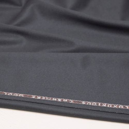 Воплощение статуса и итальянской портновской традиции. Полотно с именной кромкой «Luxurious Cashmere Wool» представляет собой синергию двух благородных материалов: высокого содержания кашемира (45%), отвечающего за исключительную мягкость и тактильный комфорт, и отборной овечьей шерсти (55%), придающей ткани прочность и износостойкость. Плотность 290 г/м² является «золотым стандартом» для теплой костюмной группы (Jacketing). Ткань не слишком тяжелая, пластичная, идеально ложится в складки, но при этом держит форму. Фактура имеет глубокий черный цвет и благородный матовый финиш. Это безупречный выбор для пошива статусного мужского пиджака, женского брючного костюма на холодный сезон, теплого платья-футляра или легкого демисезонного пальто (spolverino).