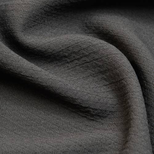 Инновации и комфорт от текстильного гиганта Marzotto. Это уникальное шерстяное полотно создано для динамичного ритма жизни. Главная особенность ткани — выраженная фактура крэш (микро-жатка), которая не только придает изделию стильный, расслабленный вид, но и делает его абсолютно не мнущимся. Благодаря высокому содержанию эластана (4%), шерсть обладает свойствами спортивного трикотажа: она тянется во всех направлениях, обеспечивая максимальную свободу движений. Плотность 190 г/м² идеальна для облегченных костюмов, которые можно свернуть в чемодан и достать без единой складки. Глубокий черный цвет универсален и практичен. Это лучший выбор для пошива мужских и женских костюмов в стиле «Travel», удобных брюк на резинке и архитектурных платьев.