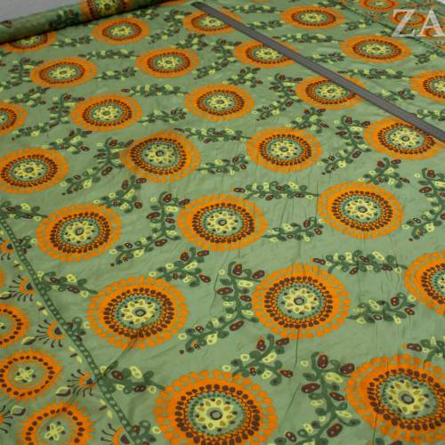 Этот итальянский шелк с ярким этническим орнаментом сочетает в себе легкость и непрозрачность, делая его идеальным выбором для создания уникальных летних нарядов. Насыщенные зеленые оттенки с оранжевыми и коричневыми акцентами придают ткани живописный вид. Материал подходит для изготовления платьев, юбок и блуз, добавляя каждому изделию ощущение роскоши и комфорта.