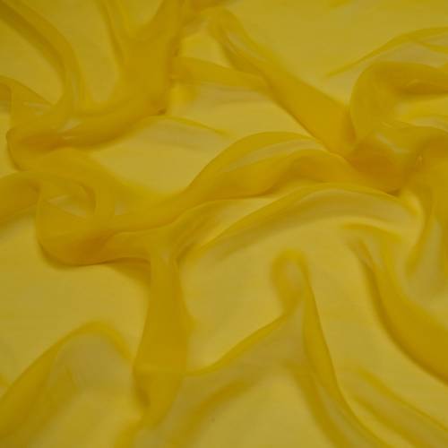 Воплощение солнечного настроения и итальянской элегантности. Этот натуральный шелковый шифон относится к классическому типу «Креп» (Crepe Chiffon). Благодаря сильной крутке нитей, поверхность ткани имеет благородную зернистую фактуру и абсолютно матовый финиш, лишенный дешевого блеска. Ткань полупрозрачная, невесомая (всего 20 г/м²), но при этом удивительно прочная. Оттенок «Солнечный Лимон» — чистый, звенящий желтый цвет, который идеально подчеркивает загар. Материал великолепно драпируется, образуя мягкие, струящиеся складки. Это лучший выбор для пошива летящего летнего сарафана, многослойной юбки в пол, свободной блузы или пляжной туники класса люкс.