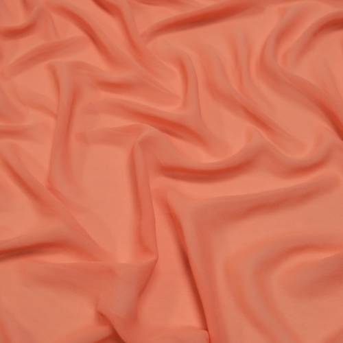 Лёгкий шелковый шифон с добавлением эластана — утончённая ткань для воздушных и женственных силуэтов. Плотность 47 г/м² обеспечивает невесомую драпировку: материал свободно струится, мягко повторяет движения и красиво раскрывается в складках. Небольшая эластичность делает изделия более комфортными и пластичными в посадке. Матовая полупрозрачная поверхность и нежный кораллово-персиковый оттенок идеально подходят для платьев, блуз и летних многослойных моделей.