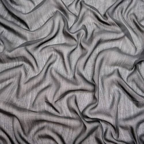 Тактильная роскошь и невесомость. Этот эксклюзивный артикул представляет собой тончайшую шерстяную вуаль (этамин) с добавлением натурального шелка. Плотность всего 60 г/м² делает ткань воздушной и полупрозрачной, но содержание 73% шерсти Virgin Wool наделяет её уникальными свойствами терморегуляции — она согревает, оставаясь невесомой. Шелк (27%) придает полотну деликатное свечение и пластичность. Фактура ткани имеет благородную неоднородность переплетения, характерную для натуральных волокон высшего качества. Глубокий черный цвет универсален. Это идеальный выбор для пошива изысканных прозрачных блуз (носимых на топ), многослойных богемных платьев, летящих туник или объемных шарфов, которые драпируются мягким облаком.