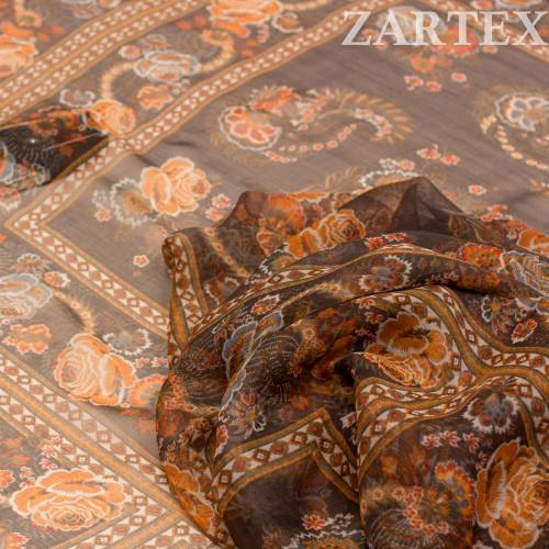 Этот эксклюзивный шифон изготовлен из 100% шелка, произведенного в Италии, и представляет собой совершенство крэш-структуры, которая придает изделию неповторимый объем и текстуру. Ширина материала в 130 см подходит для создания изысканных платьев и элегантных шарфов. Коричневый фон украшен изысканным цветочным узором в оранжево-бежевых оттенках, добавляющим ткани изящество и благородство. Идеален для вечерних нарядов и летних ансамблей, этот шифон обещает воплотить ваши самые изысканные дизайнерские замыслы.